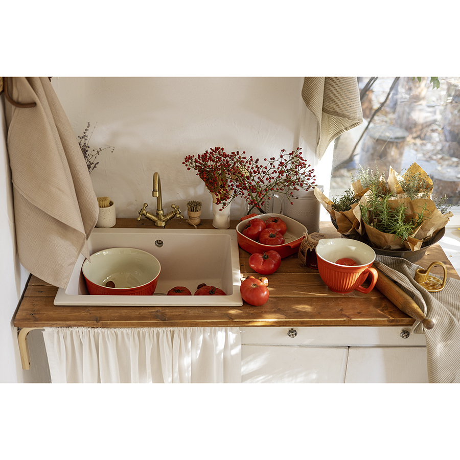 Коллекция Soft Ripples торговой марки Liberty Jones – это стильные и функциональные блюда для запекания, кувшины для смешивания, миски, молочники, масленки с бамбуковой крышкой, чаши на бамбуковой подставке, тарелки, салатники, кружки, подставки для яиц, чайные пары, чашки с блюдцами, подставки для торта, сахарницы, салфетницы, банки для хранения сыпучих продуктов с бамбуковой крышкой, а также другая кухонная, столовая посуда и предметы сервировки, изготовленные из белоснежного фарфора или прочной каменной керамики и покрытые специальной глазурью ярко-красного, карамельного или нейтрального белого оттенка. Изделия имеют сдержанные формы и минималистичный рельефный декор в виде вертикальных линий, благодаря чему гармонично сочетаются с любой сервировкой и прекрасно вписываются в классический или современный интерьер.