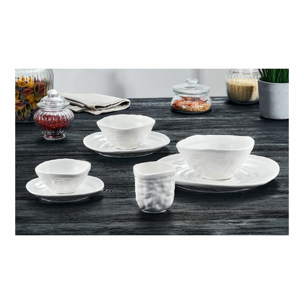 В серию Infinity от производителя Walmer входят элегантные сервировочные блюда, миски, стаканы, а также другая столовая посуда и предметы сервировки, изготовленные из упрочненного минерального фарфора чистого белого цвета с глянцевым глазурованным покрытием. Дизайн коллекции вдохновлен умиротворяющими природными образами – бесконечностью океана, шумом прибоя, ракушками на песке. Изделия имеют органичные формы с нарочито неровными линиями, создающими ощущение постоянного движения, и однотонную поверхность, украшенную рельефным узором, который напоминает внутреннюю часть большой ракушки. Посуда подходит для использования как дома, так и в профессиональных заведениях.