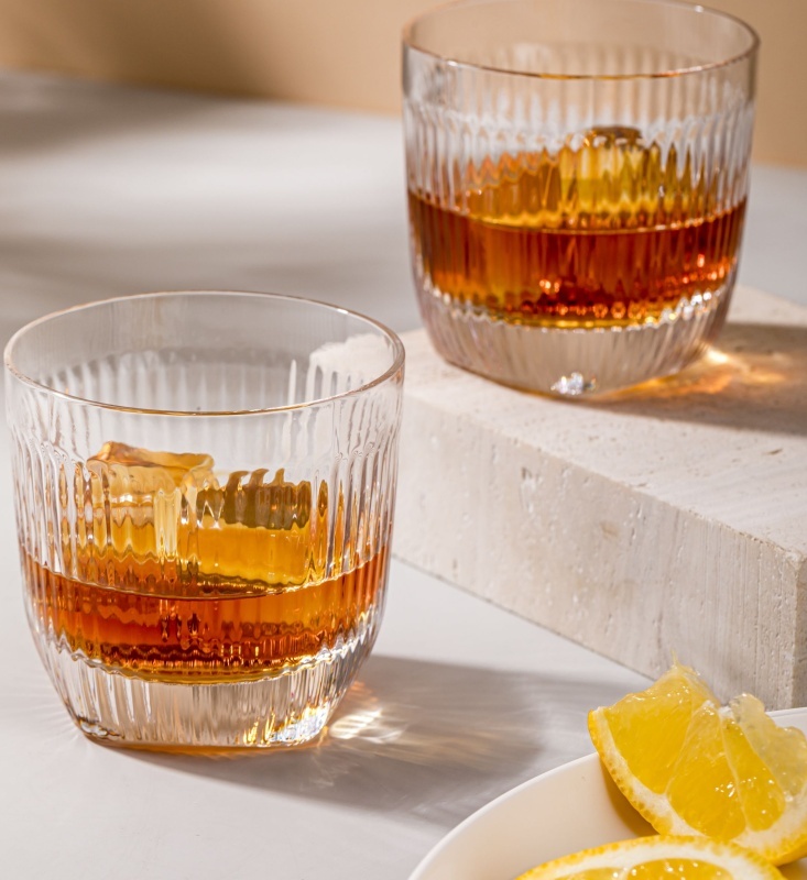 Серия Идеальная подача от производителя Krosno представлена изысканными бокалами для красного вина, стаканами и наборами для виски, а также другой посудой для подачи алкогольных и безалкогольных напитков из первоклассного прозрачного стекла. Емкости, вдохновленные стилем ар-деко, имеют элегантные формы, которые в сочетании с абсолютно прозрачными стенками позволяют в полной мере оценить благородный цвет и текстуру напитка. Стаканы и штофы для виски имеют красивую рифленую поверхность, создающую восхитительные блики на свету. Посуда Идеальная подача станет роскошным дополнением повседневной или праздничной сервировки и расставит тонкие акценты в интерьере. Рекомендуется ручное мытье.