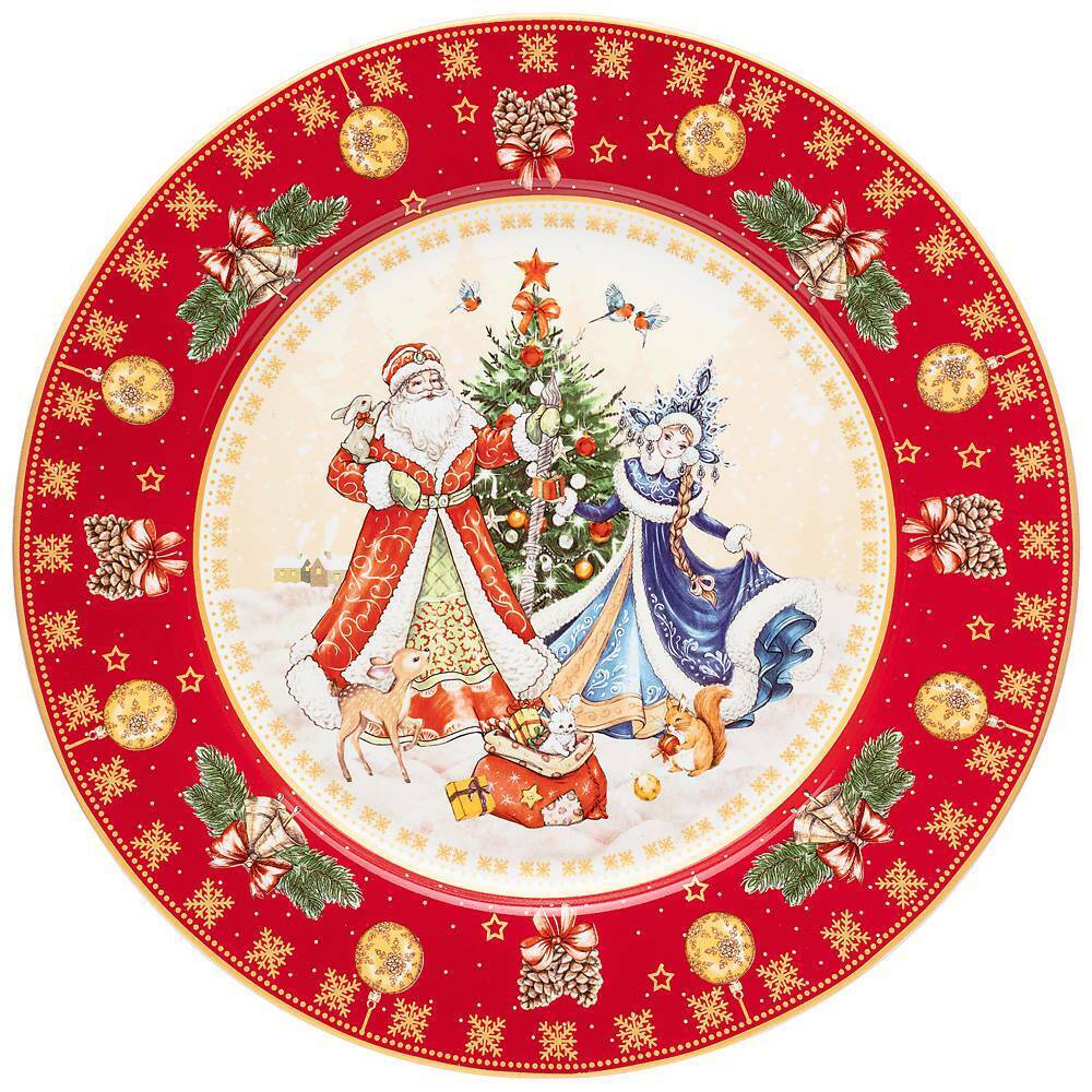 Тарелка обеденная Дед Мороз и Снегурочка, 27 см, красная 85-1716 Lefard