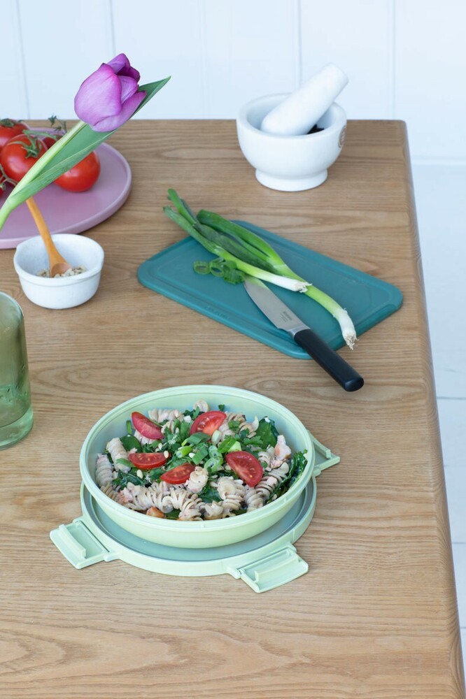 Коллекция Make&Take от компании Brabantia представлена практичными ланч-боксами, питьевыми бутылками, суповыми кружками, мисками для завтрака, чашами для салатов, столовыми приборами, а также другой посудой для хранения, транспортировки и сервировки пищи и напитков. Изделия выполнены из экологически чистого пластика, пригодного для вторичной переработки, или гигиеничной нержавеющей стали и имеют стильный современный дизайн освежающего мятно-зеленого, светло- или темно-серого цвета. На всю посуду этой линейки производитель дает гарантию 5 лет.