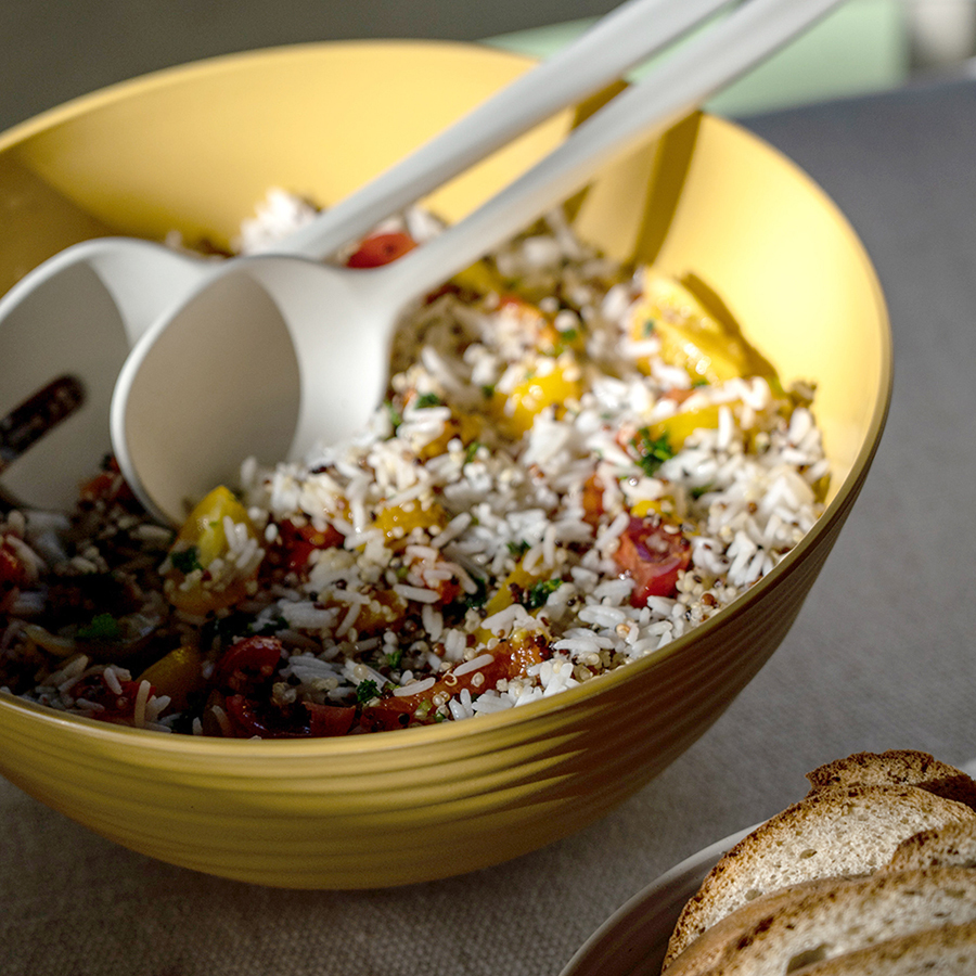 Линейка Tierra торговой марки Guzzini представлена удобной и функциональной посудой и кухонными приспособлениями, которые изготовлены из 100% переработанного пластика. Вместительные салатники с крышкой, приборы для салата и другие изделия имеют стильный современный дизайн, выполненный в пастельной цветовой гамме и по своей фактуре напоминающий керамику. Намеренно неровные круговые рисунки и тщательно подобранные цвета создают эффект ручной работы. Посуда и кухонные принадлежности Tierra необыкновенно эстетичны и приятны на ощупь. Они легко очищаются от загрязнений вручную или в посудомоечной машине.