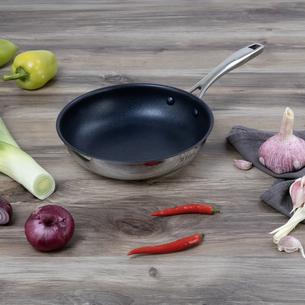 | Свойства : | Для стеклокерамических плит, Для жарки, С антипригарным покрытием, Индукционные, Из нержавеющей стали, 20 см, Тефлоновые, Маленькие |