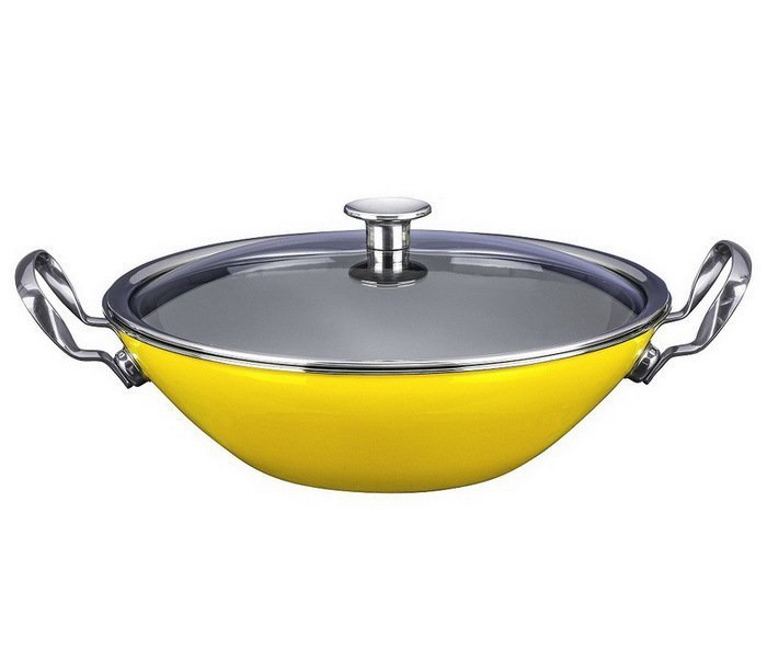 Вок эмалированный, 3,8 литра, диам. 30 см, выс. 9 см, цвет желтый, со стеклянной крышкой, (45518630) 45508630 Kochstar