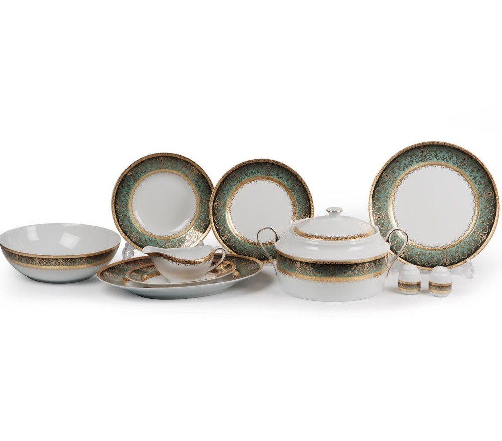 В линейку Mimosa Prague Degrade от производителя Tunisie Porcelaine входит стильная столовая и чайная посуда, выполненная из высококачественного лиможского фарфора и украшенная вручную декором в технике деграде – изысканный изумрудный кант плавно переходит градиентом от краев предметов к светлым пастельным тонам в центре, создавая ощущение загадочности и невесомости. Посуда также декорирована роскошным золотым орнаментом, подчеркивающим ее белоснежную поверхность. Оригинальное сочетание необычного декора и европейского дизайна делают каждый сервиз серии Mimosa Prague Degrade настоящим произведением искусства и элегантным украшением столовой или кухни.