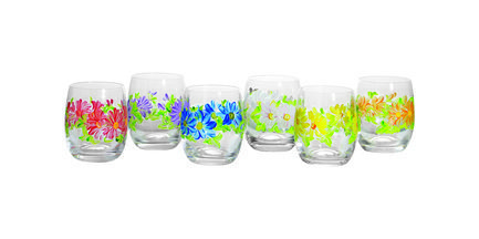 Посуда серии Blooms бренда Fade – это сочетание традиционных технологий и современного дизайна. В линейку входят наборы бокалов для воды разных форм и размеров – от 300 до 450 мл. Оригинальные модели погружают в атмосферу цветущего лета: их прозрачная стеклянная поверхность украшена пышными и яркими цветами. Изделия изготовлены из высококачественного многослойного стекла повышенной прочности и рассчитаны на долгий срок службы. В каждый комплект включено шесть предметов.